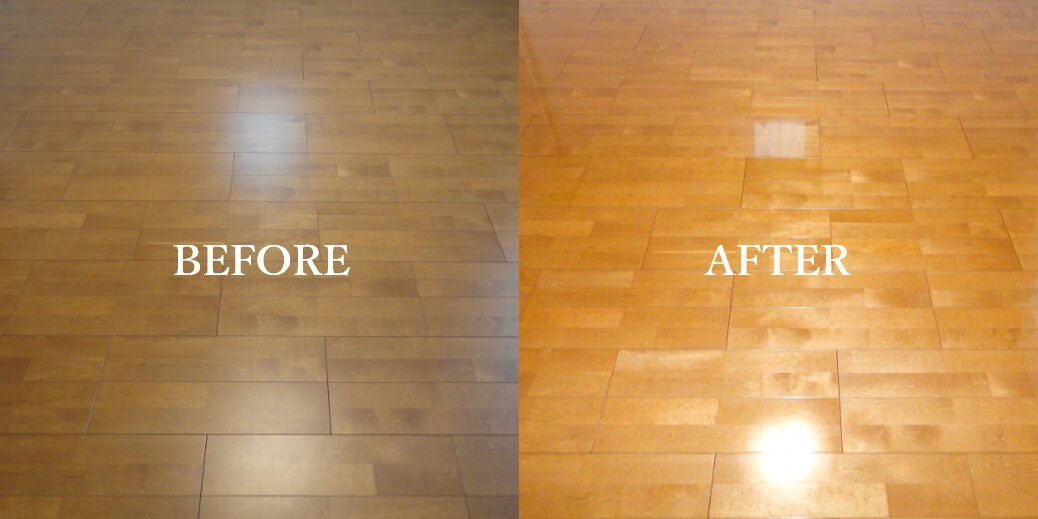 一般に使用されているワックスは汚れを吸収しやすくワックスに含まれる蝋分が黄色く変色してしまいます。コーティングはワックスよりも被膜が丈夫で密着直も強く、コーティングを行うことでワックスを行う必要が無くなるため経済的に床を綺麗に保護出来ます。
